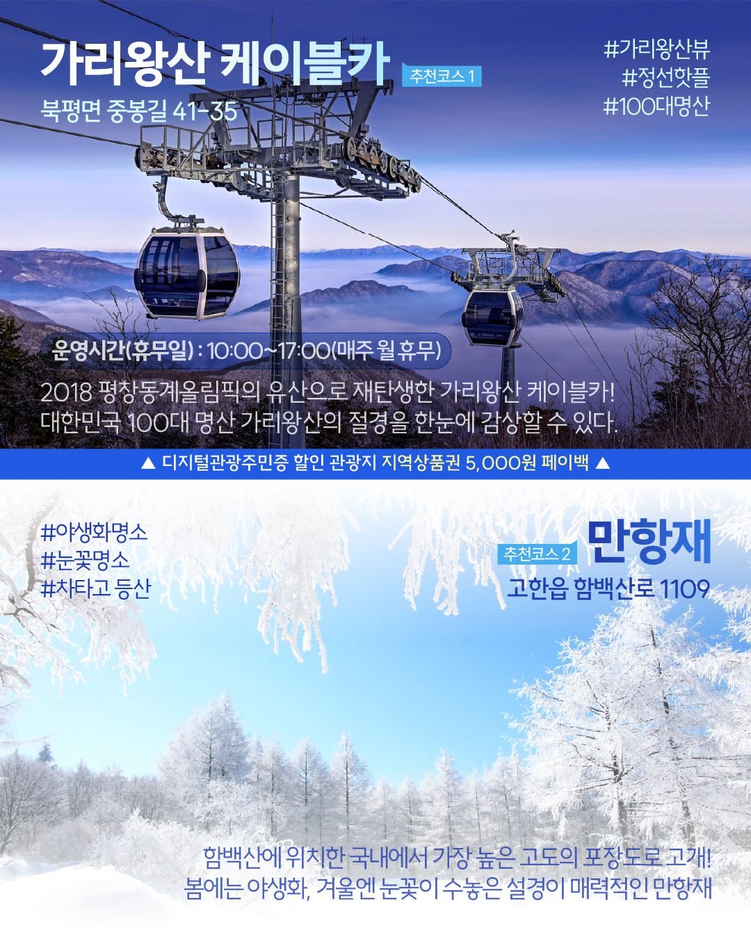 2018 평창동계올림픽의 유산으로 재탄생한 가리왕산 케이블카로 멋진 설경 담아가시고,