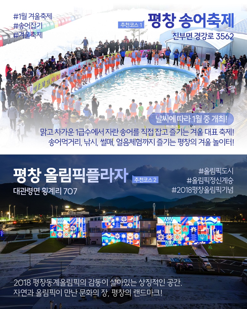 곧 개최되는 떠오르는 강원의 겨울 대표 축제인 평창 송어축제가 기다리고 있습니다.