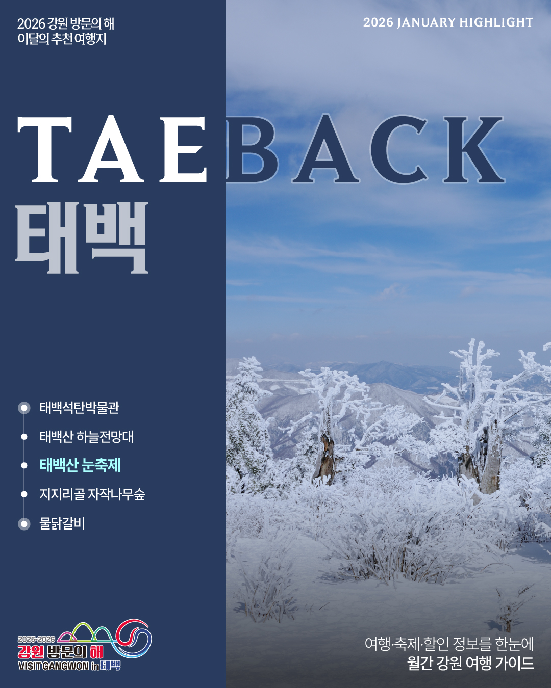 2025-2026 강원 방문의 해, 1월 추천 여행지 "태백" 입니다.